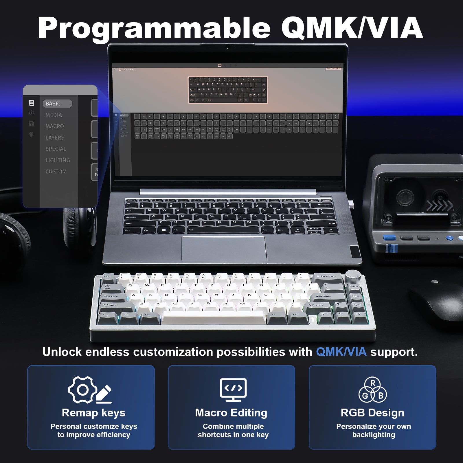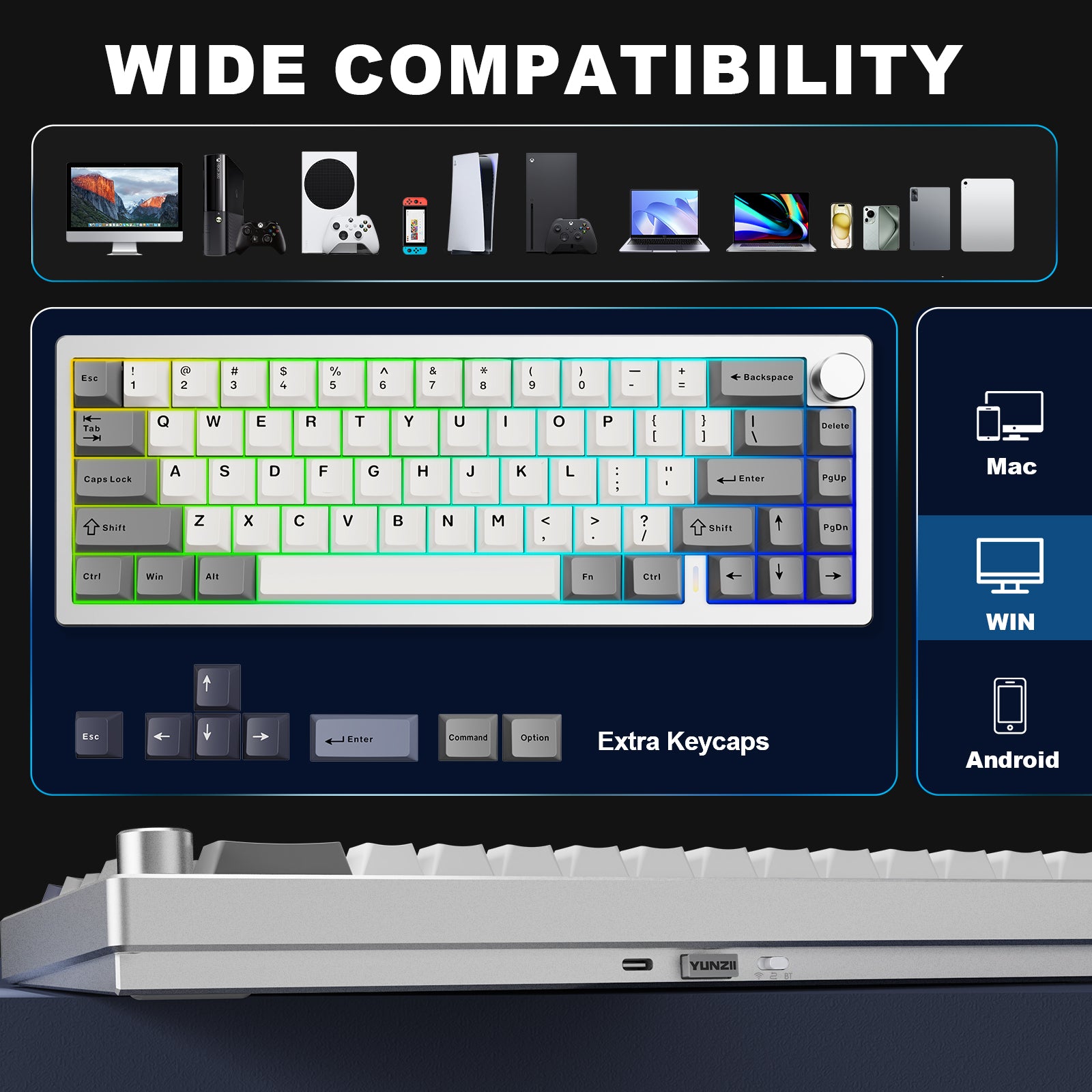 Unlock endless customization possibilities with the YUNZII AL68’s full QMK/VIA support. This programmable keyboard allows users to easily remap keys, create macros, and personalize backlighting. Compatible with Mac, Windows, and Linux, this QMK/VIA wireless custom mechanical keyboard is ideal for gaming and professional work. Take control of your keyboard layout and enjoy the ultimate in user-defined functionality.