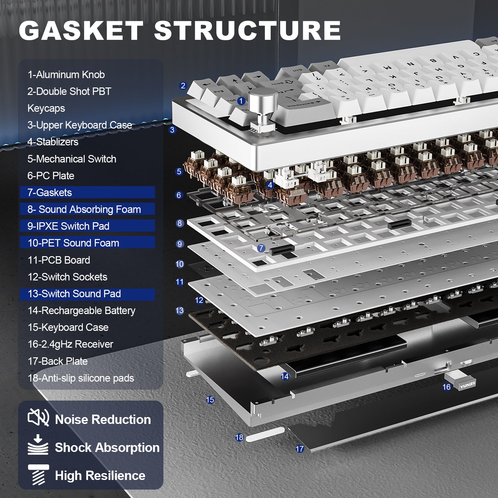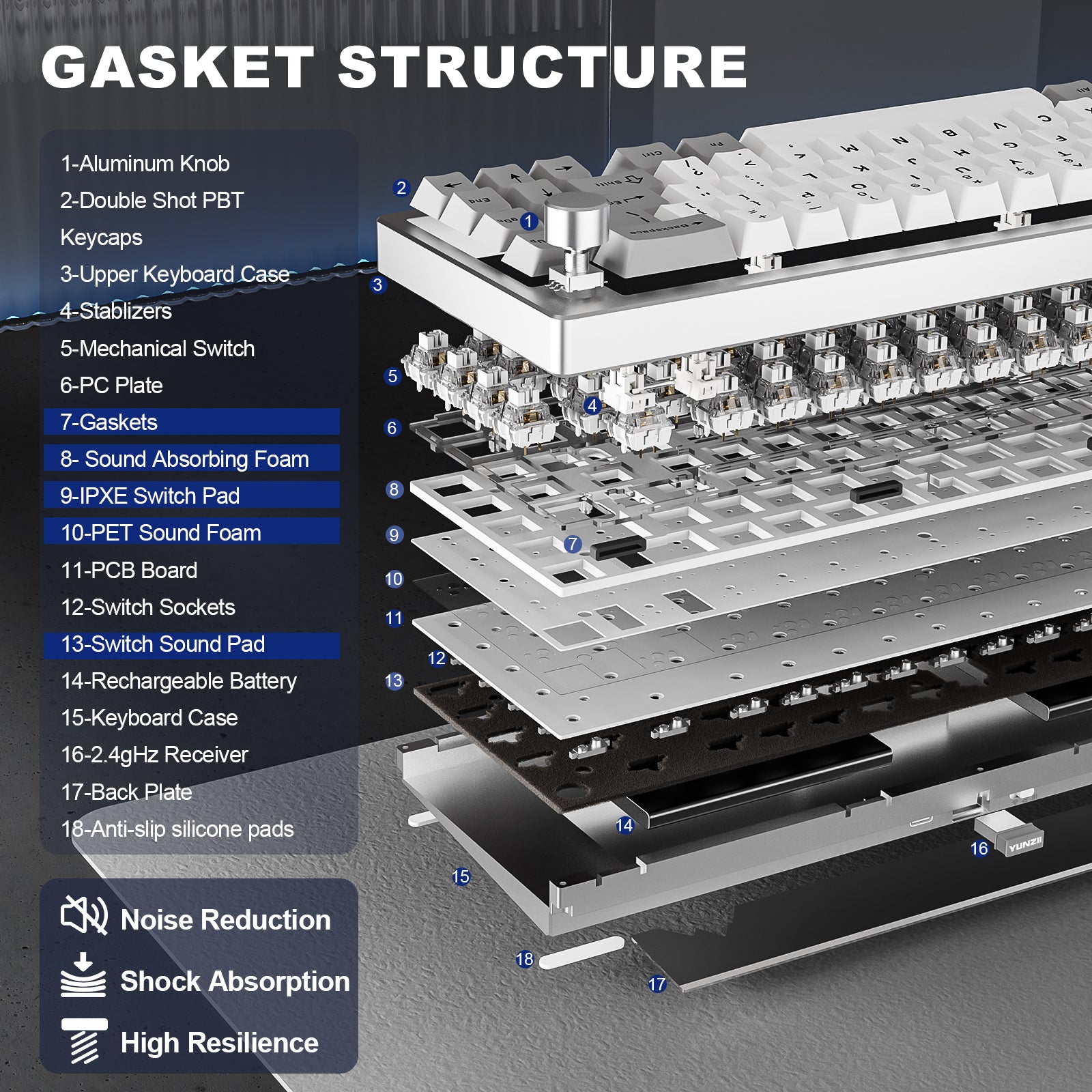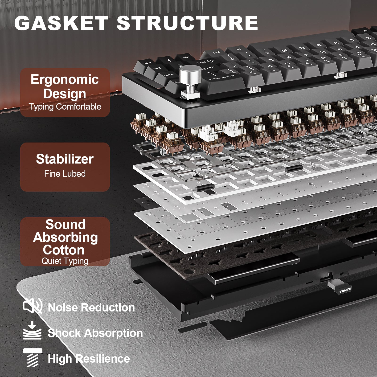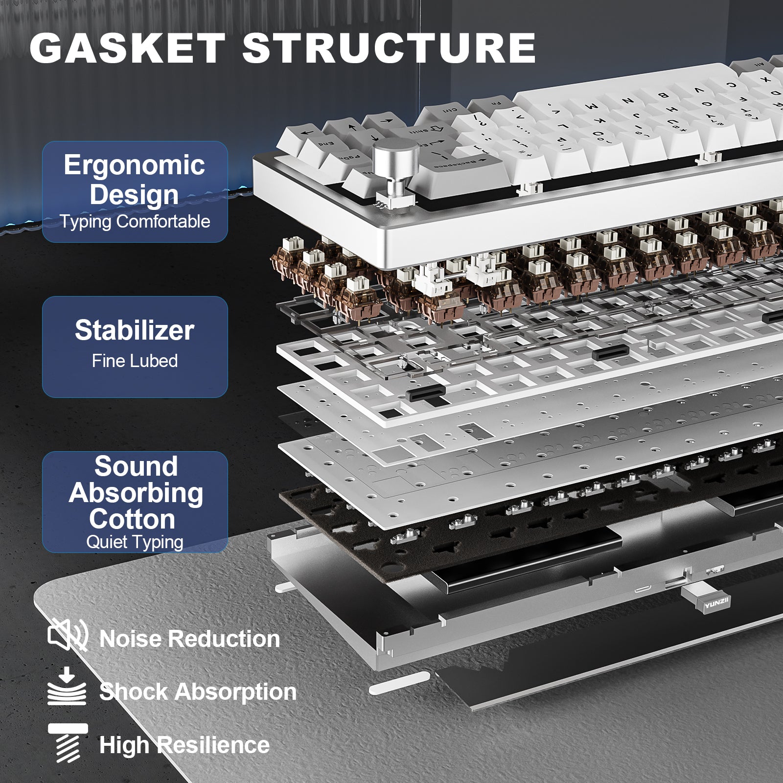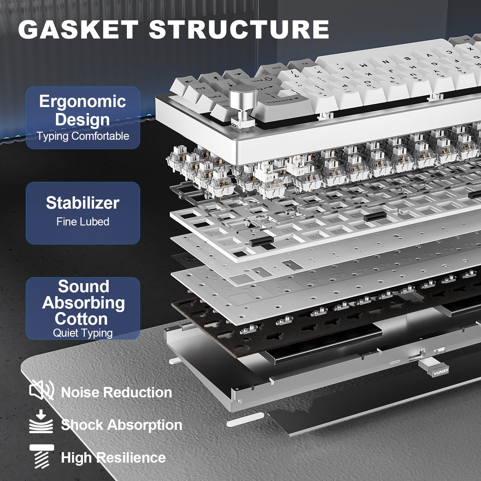 The hot-swappable keyboard features a gasket mount structure that ensures vibration dampening and sound reduction, creating comfortable and thocky typing. Compatible with both 3-pin and 5-pin switches, this keyboard comes with pre-lubed switches and stabilizers for a satisfying creamy sound. It features a Flex-Cut PC Plate and 4-layer sound fillings, perfect for enthusiasts looking to customize their creamy keyboard with high-quality components.