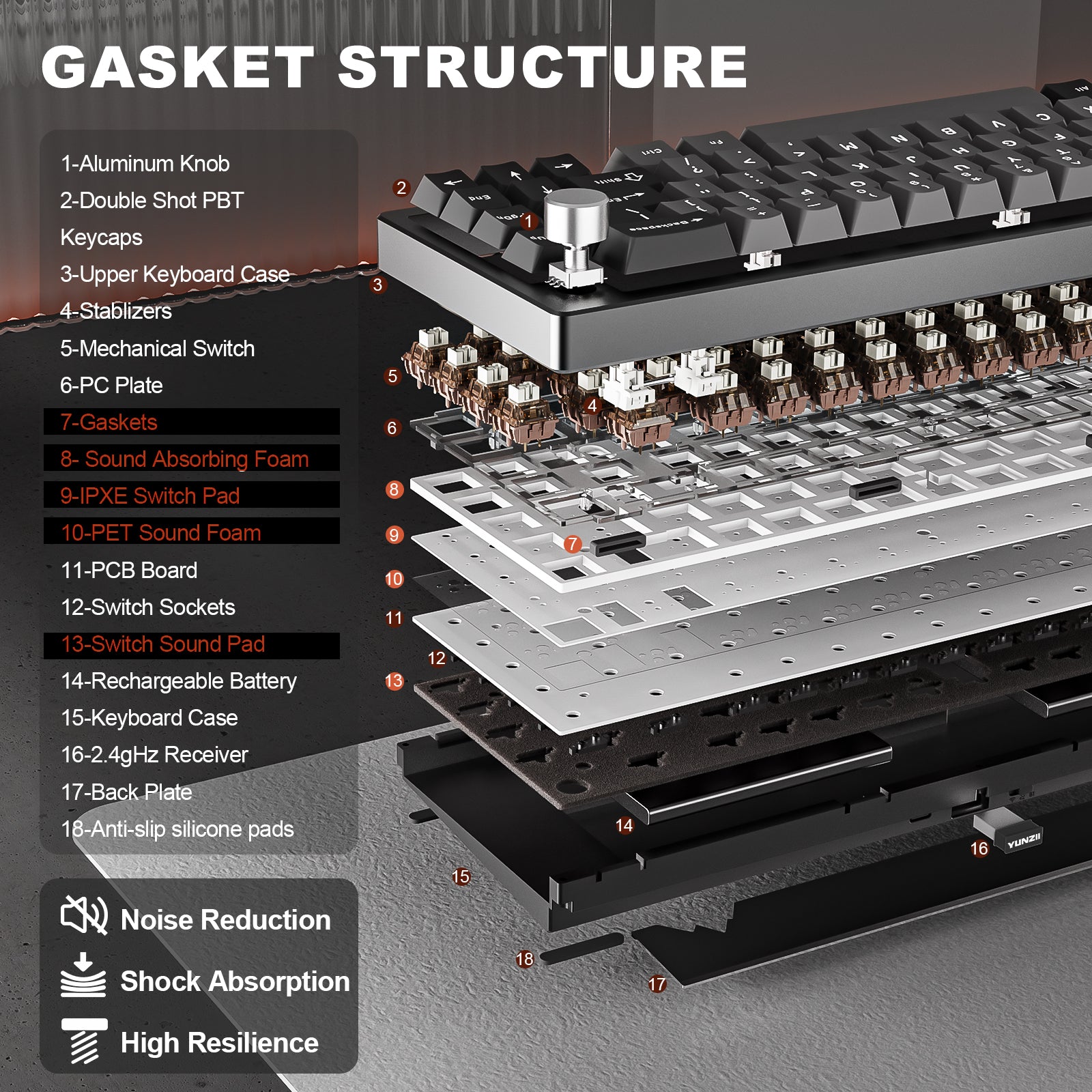 YUNZII AL68 elevates your PC setup with its vibrant RGB backlighting and durable double-shot PBT keycaps. The south-facing LEDs and cherry profile keycaps ensure a smooth, evenly distributed light effect, perfect for both gaming and work. With customizable lighting effects, this RGB keyboard adds a dynamic, colorful touch to any setup, enhancing both aesthetics and functionality.